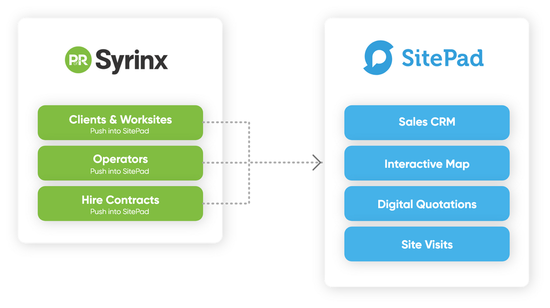 Flannery required SitePad to provide a Syrinx integration to sync their Clients, Sites, Machines, Hire Contracts and Operators directly with SitePad to give instant visibility for the sales team.