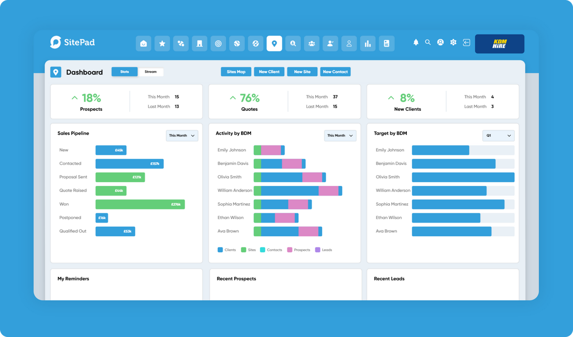 SitePad’s CRM, with Syrinx integration, enabled KDM Hire to draw critical data insights across various facets of their operations: