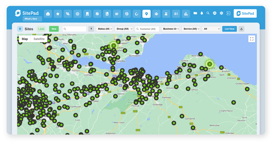 SitePad Construction CRM provides fast management of chasing, active and completed sites, all trackable via an interactive map.
