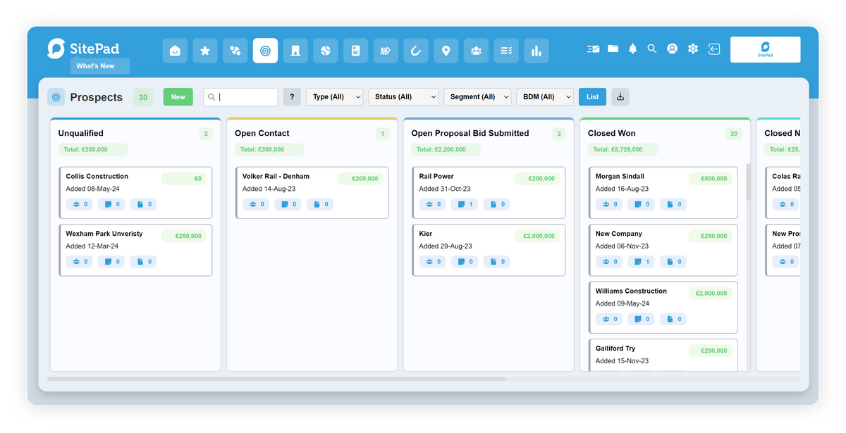 SitePad specialises in managing clients that are mid to large construction groups, with multiple offices, and sites with speed and ease. It allows for instant viewing of the sales pipeline and helps in maintaining strong relationships with construction industry clients.